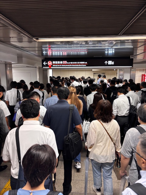 集合が新大阪駅だったので普段は乗らない通勤ラッシュの地下鉄に乗りました。