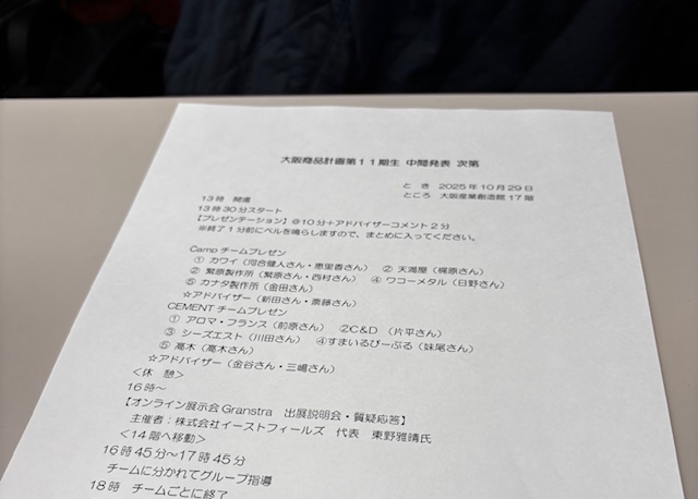 先日、大阪商品計画11期生の中間発表会に呼んでいただきました。