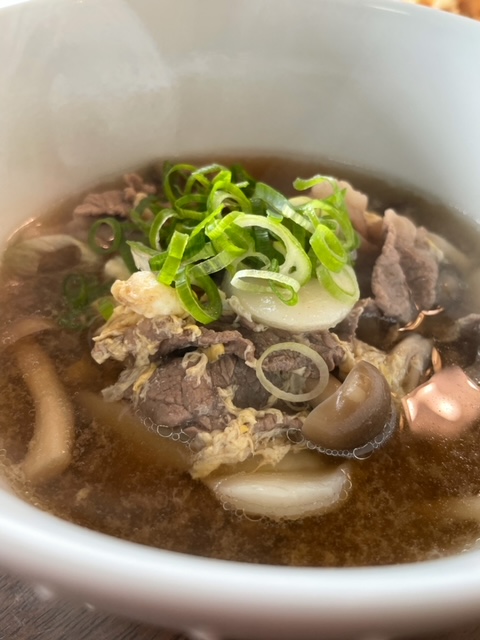 牛肉をちょろっと入れ、さらに溶き卵を入れてふわふわの卵スープにすると贅沢なスープの出来上がり。