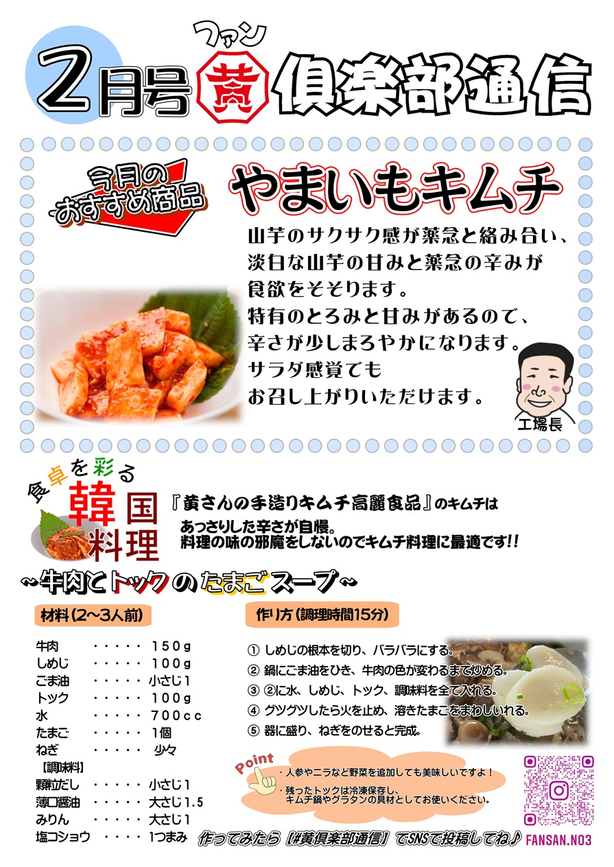 黄(ファン)倶楽部通信2026年2月号を作りました♪