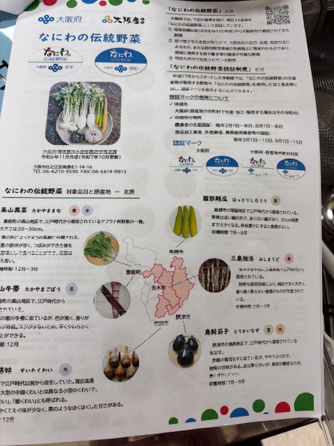 こうした背景を見直し復活をかけた活動として、大阪府は2005年に「なにわの伝統野菜」(なにわ伝統野菜)の認証制度を定め、18品目を挙げています。