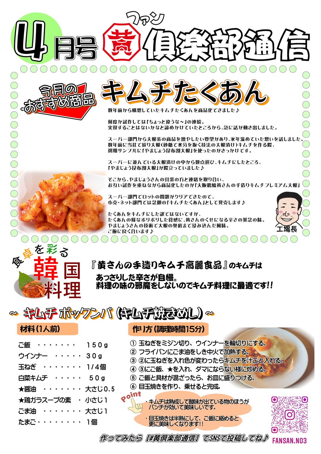 おすすめレシピは「キムチポックンパ」