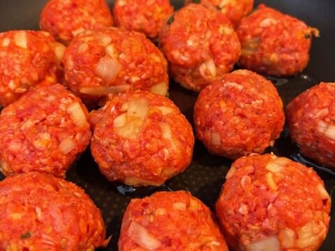 1.白菜キムチ、たくあんを粗みじん切りする。